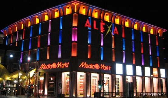 Alexa am Alexanderplatz Berlin – Das rote Gebäude im Art-Déco-Stil ist nicht zu verfehlen. Direkt am Alexanderplatz bietet es ein Shoppingparadies mit 180 Geschäften.