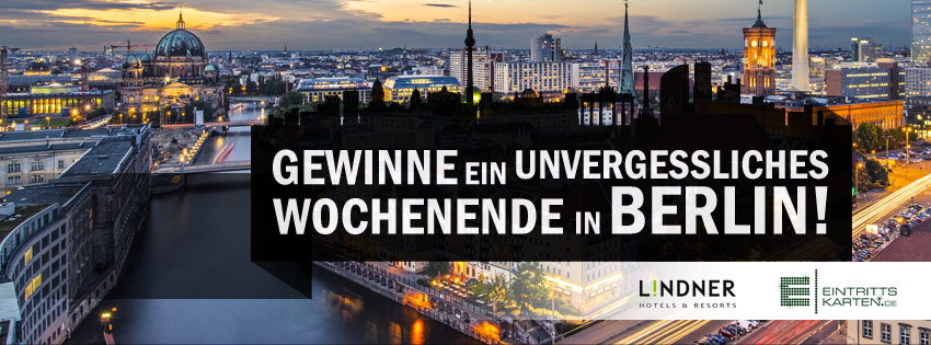 Berlinsüchtige und Hauptstadtfanatiker aufgepasst: In Kooperation mit dem Online-Ticketshop EINTRITTSKARTEN.de und dem Lindner Hotel am Ku`Damm verlosen wir einen Citytrip nach Berlin.