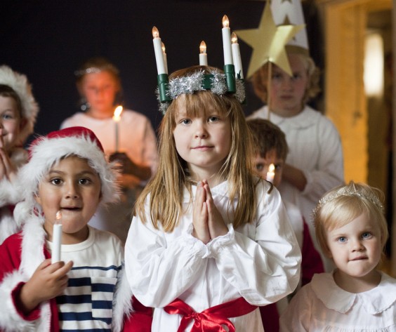 In Stockholm feiert man schon am 13.12. den Tag der Santa Lucia. Zu Ehren der Heiligen Lucia, der Lichtbringerin, tragen die Mädchen weiße Kleider. Die “Lucia” trägt eine Lichterkrone aus Kerzen und schreitet der feierlichen Prozession voran. Ein traditionelles Weihnachtsgebäck zum Luciatag sind die leckeren Lussekatt, ein Hefegebäck mit Safran und Rosinen. Auch die Weihnachtswichtel finden in den schwedischen Weihnachtsbräuchen natürlich ihren Platz.